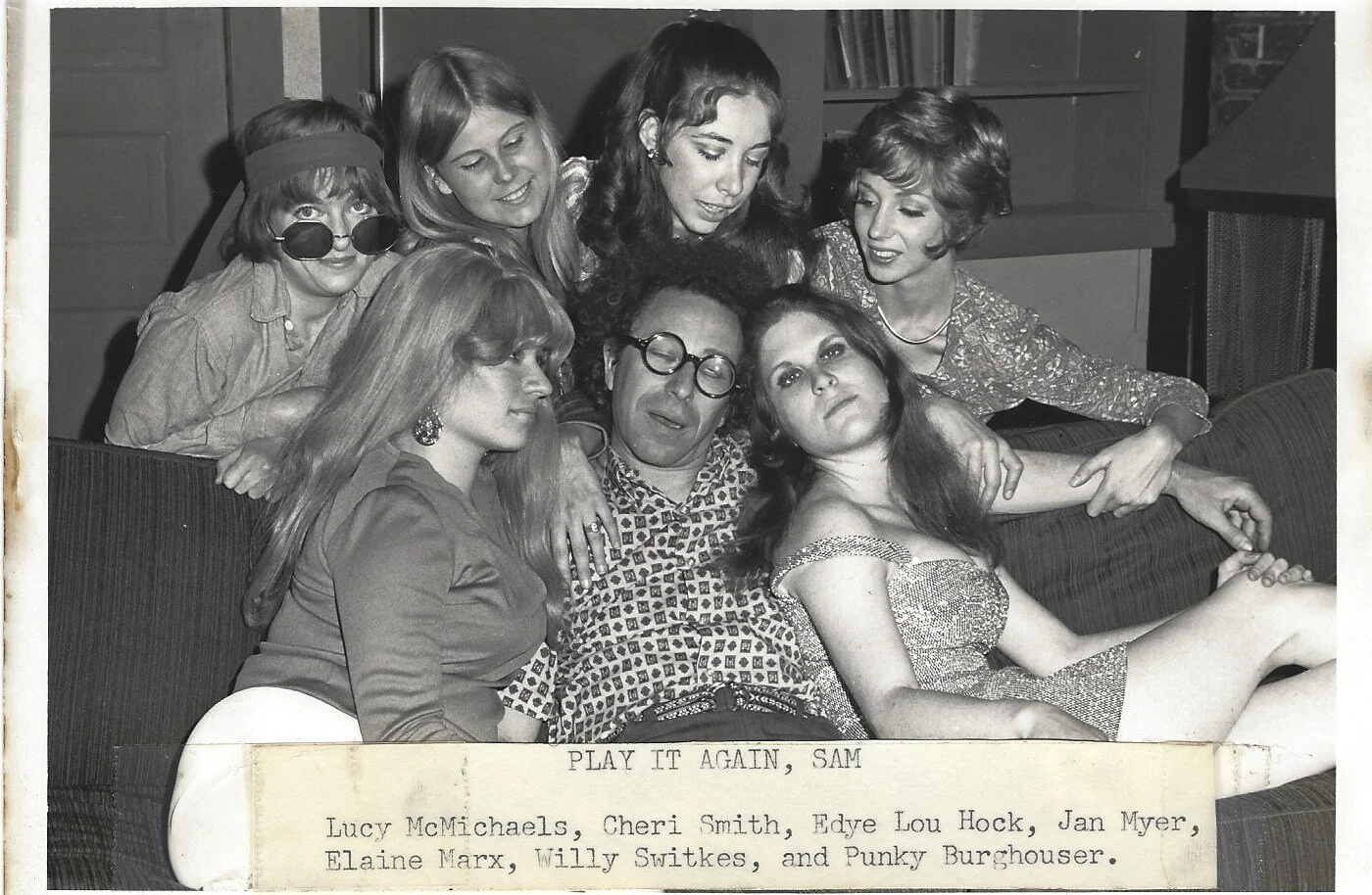 Play it Again, Sam. June 22 - July 4, 1971. Seated: Elaine Marx, Willy Switches, Punky Burghouser. Second row: Lucy McMichaels, Cheri Smith, Edye Lou Hock, Jan Myer.
